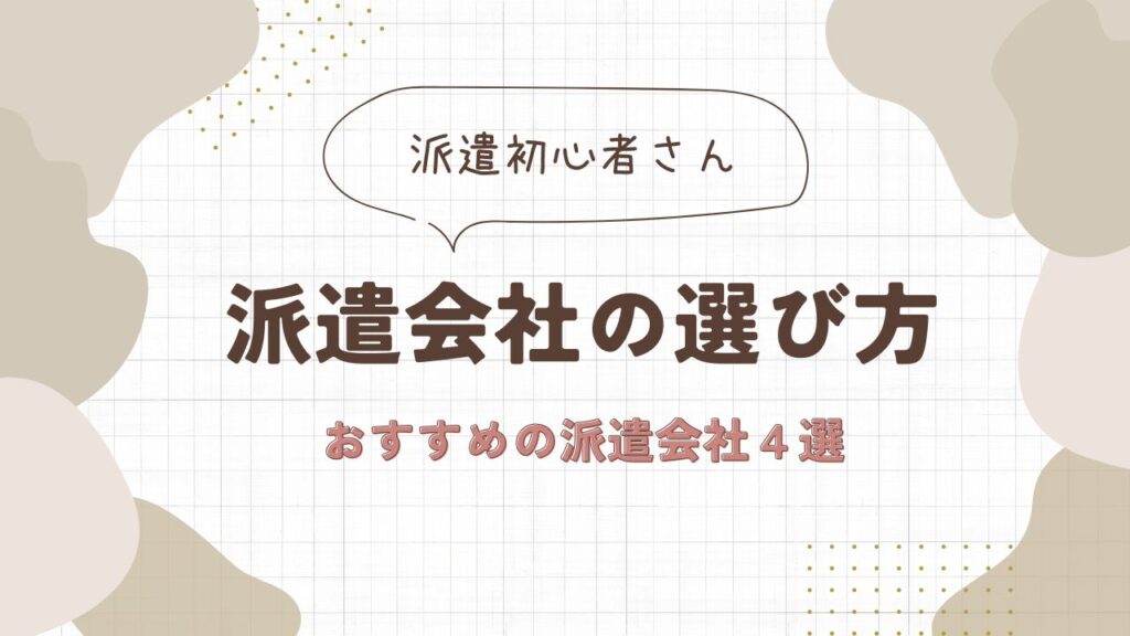 「派遣会社に登録したいけど、どこに登録したら良いか分からない」「派遣会社ってどう選べば良いの?」派遣に興味ある人のなかには、このようなお悩みをお持ちの方も少なくはないと思います。派遣会社っていくつもあって、どう選んだら良いのか分からないです...